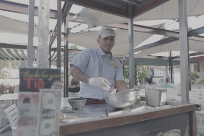 The day was for Chichen Itza. We stopped at a convenience store halfway there and I decided to order some enchiladas from the restaurant next door (Restaraunte Tio Manolo). Incredibly tasty and probably the best I’ve ever had. I took a picture of a painting inside which reminded me of the 4th Hokage, an ocean by himself. One of the families having breakfast hollered at me and pointed to their daughter, letting me know that she painted it. As I left with four enchiladas in a to-go box, Evan told me that he offered a random dude who lived in Chichen Itza a ride back. His name was Gilberto and he made souvenirs his whole life. He grew up in poverty with his father (a farmer) and a mother who died at 15. He started making wood worked items in his early 20s.