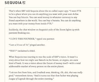 That's a long list of some of the most impressive investors in venture and private equity. Someone sent me a really really funny memo by Sequoia about FTX.